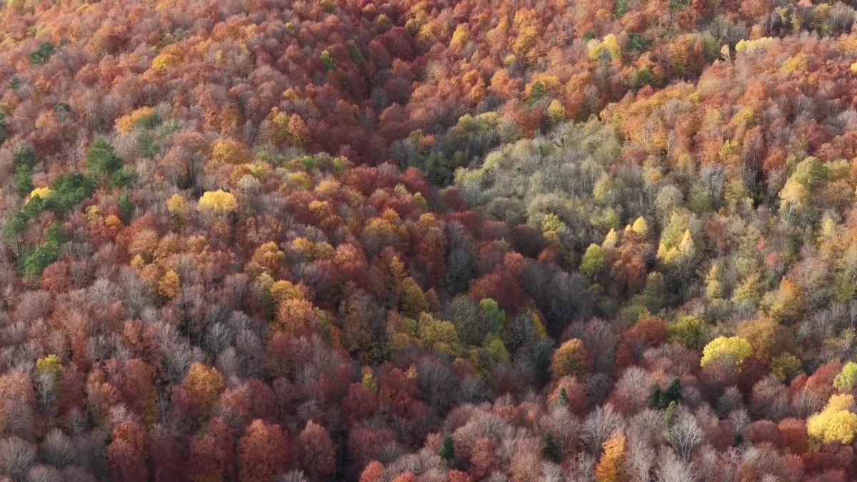 Mengen ilçesinde sonbaharın gelişiyle birlikte sarı, kırmızı ve kahverenginin tonlarına bürünen ormanlar, drone'la görüntülendi.