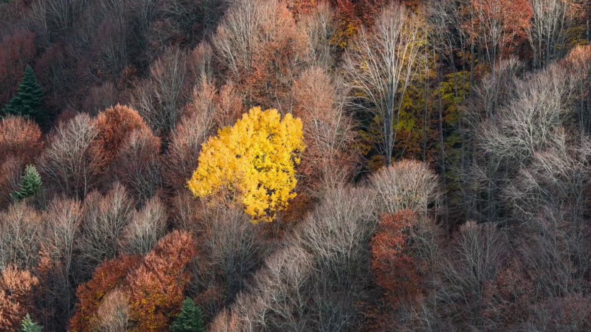 Bölgede oluşan sonbaharla birlikte oluşan renk cümbüşü drone’la görüntülendi.